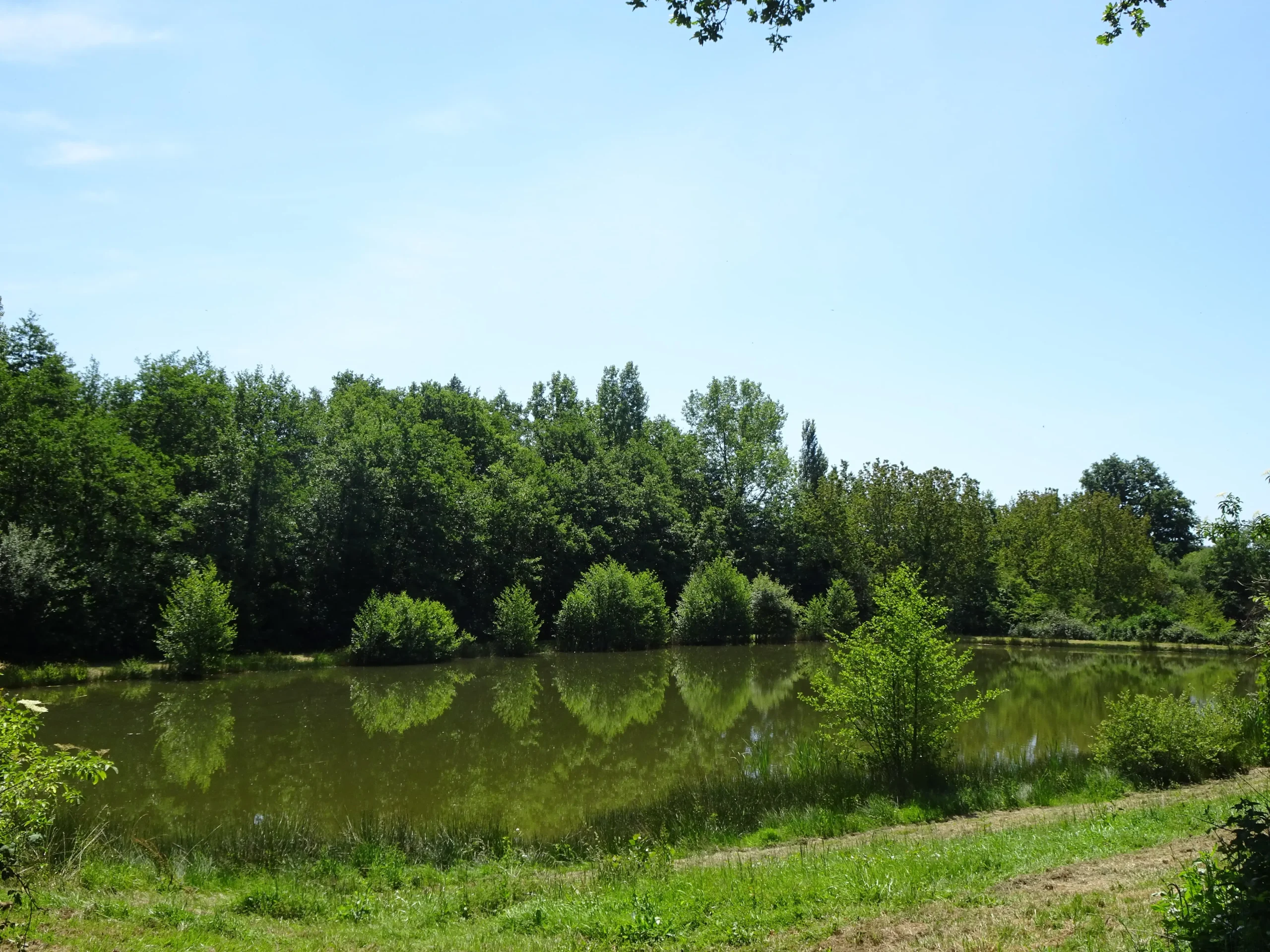 Notre étang abrite gardons, carpes et perches. La pêche est libre et pratiquée en no kill : on profite, on observe, on repose.